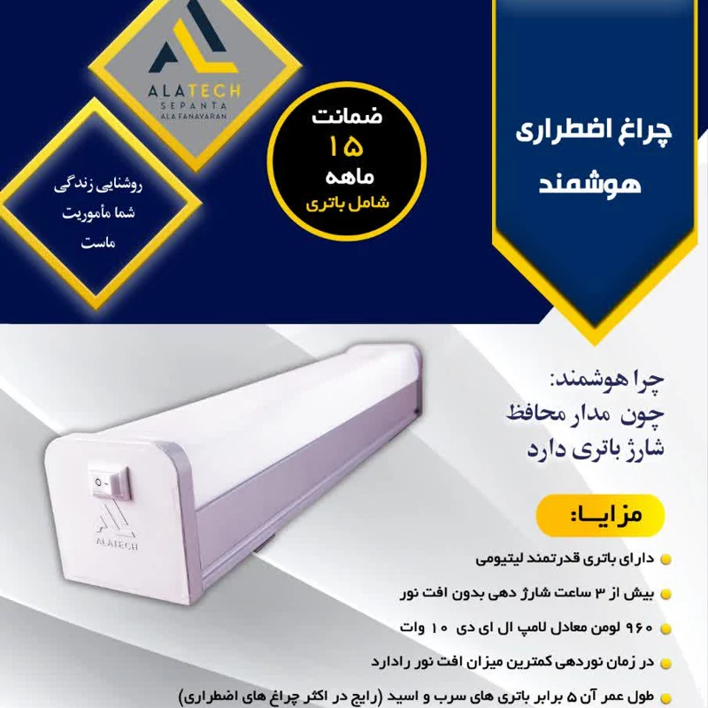 چراغ اضطراری/ شارژی هوشمند آلاتک باتری لیتیومی
